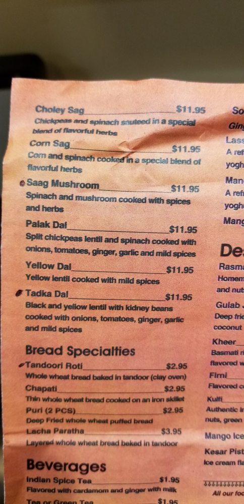 “ Excellent food with friendly service. Buffet price on Saturday and Sunday is 15.95 and Tuesday thru Friday is 14.95. Great selection of different dishes from chicken tandoori to goat to Naan. Loved everything that I ate. I didnt get a chance to try their desserts though due to eating too much regular food. Will definitely come back again though. Restaurant was very clean and spacious, which is a plus. They also have a regular menu if you do not want the buffet. ”